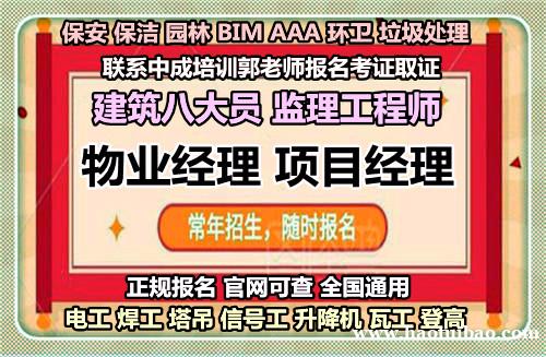 1、全国城建培训中心:物业经理、物业项目经理、物业管理员、物业总经理、物业副总经理、房地产经纪人、房地产营销总监、房地产中介人员证等报名。