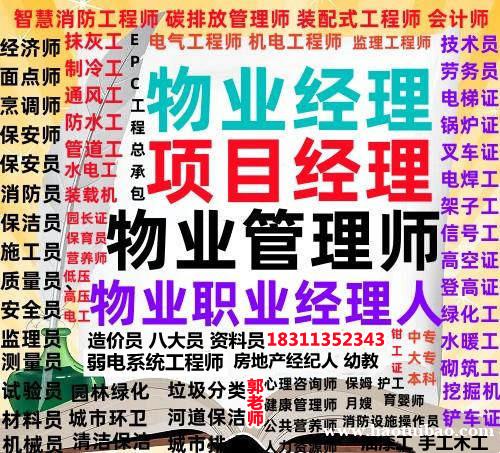 河道保洁工程师消防工程师物业管理员环卫项目经理证建筑工程师土木工程师